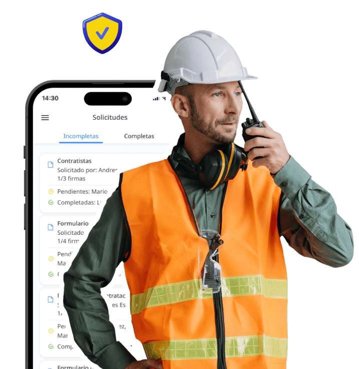 El operador completa el checklist desde el celular — con foto, firma y GPS. Funciona sin señal.
